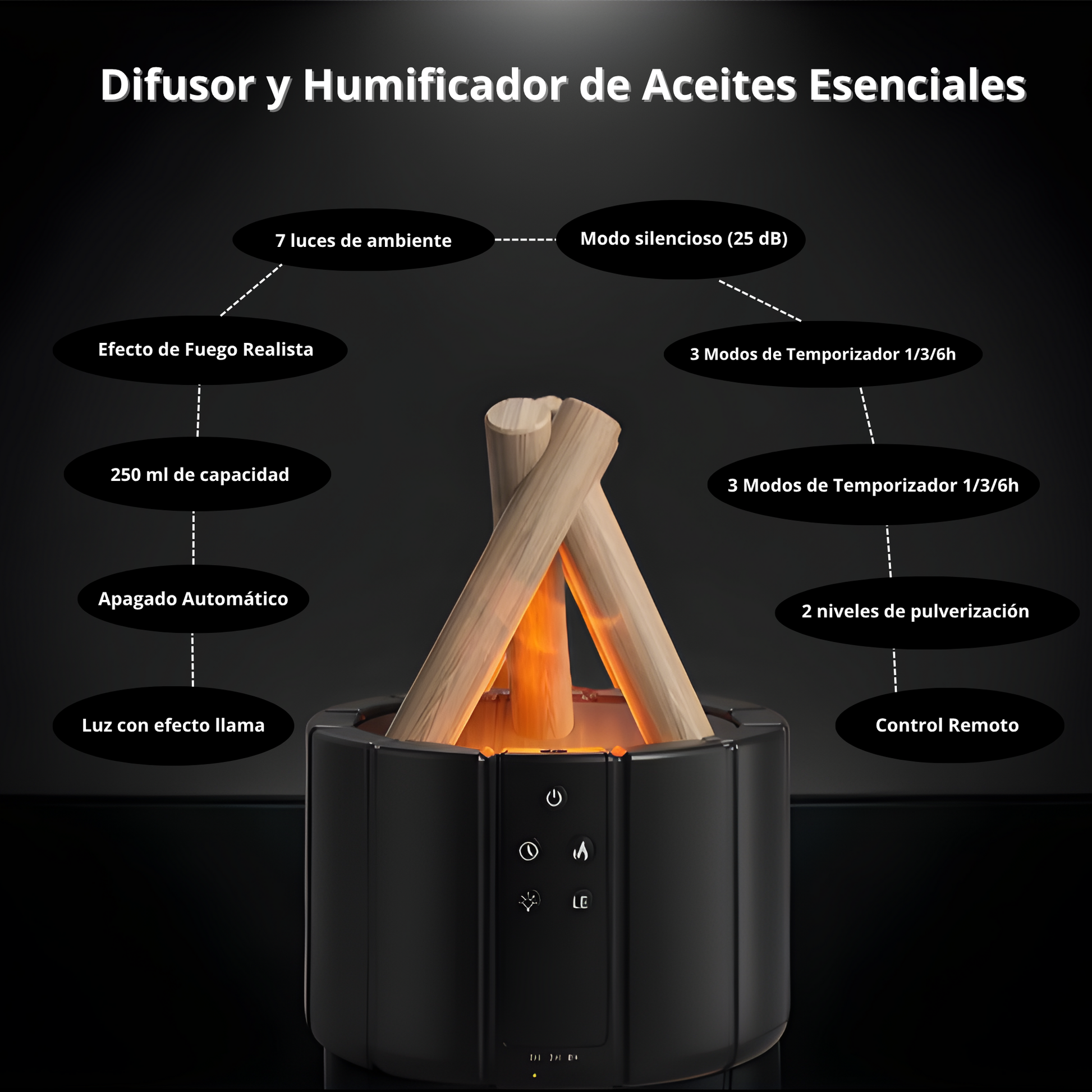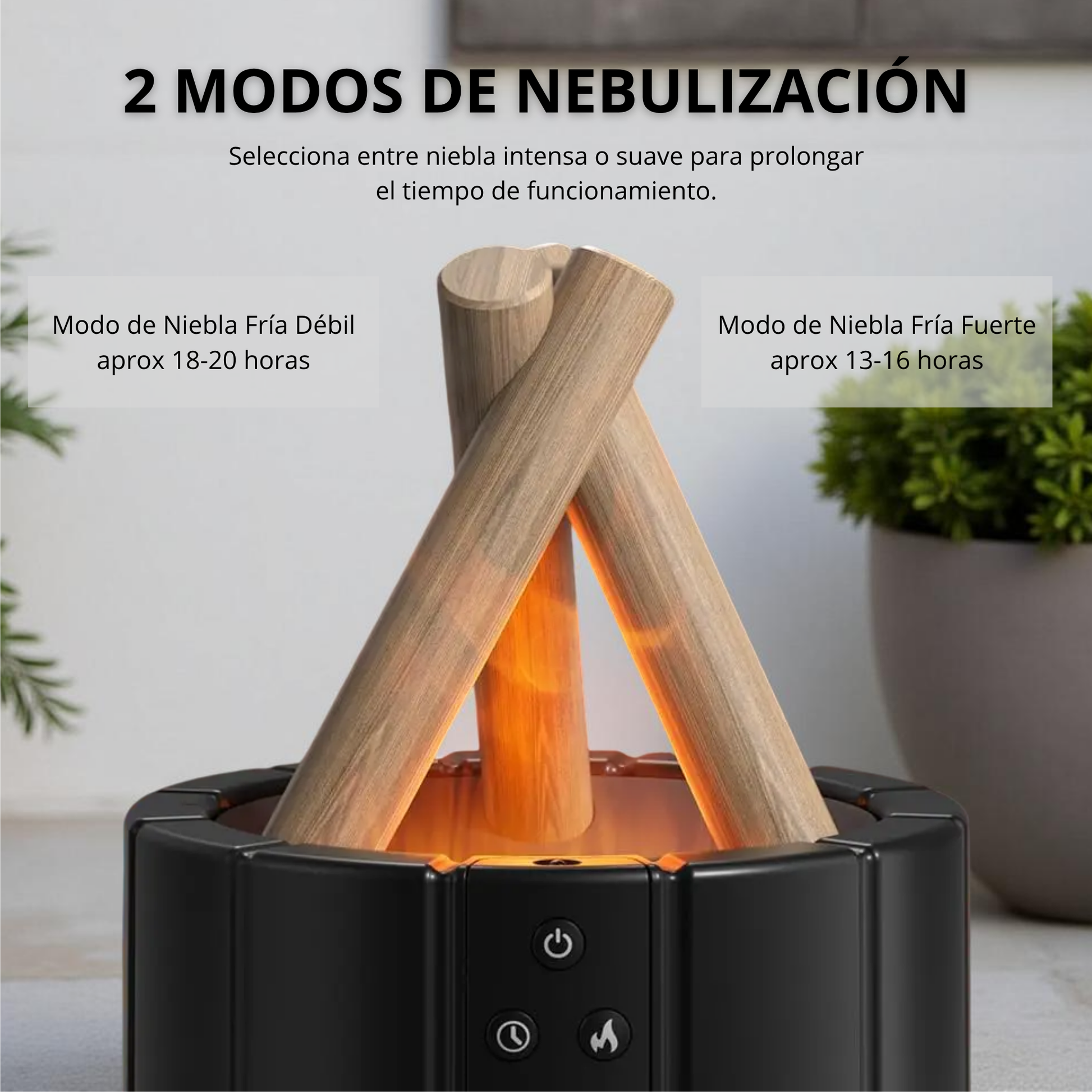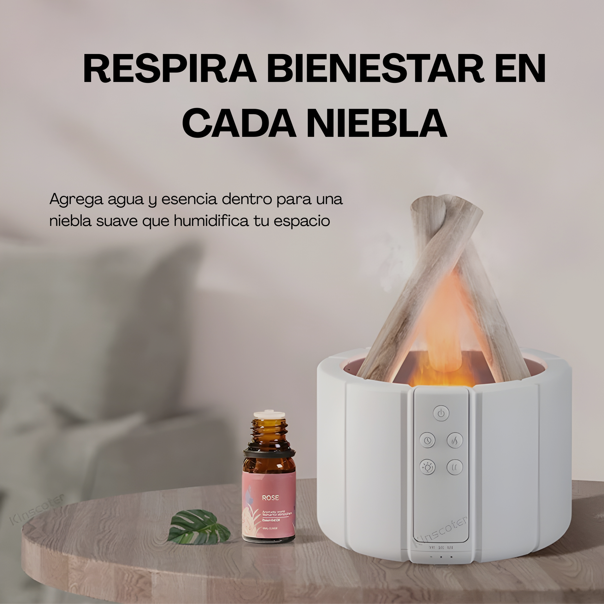 Nuestro humidificador con efecto chimenea combina diseño moderno, luz cálida y vapor aromático para transformar cualquier espacio en un rincón acogedor.